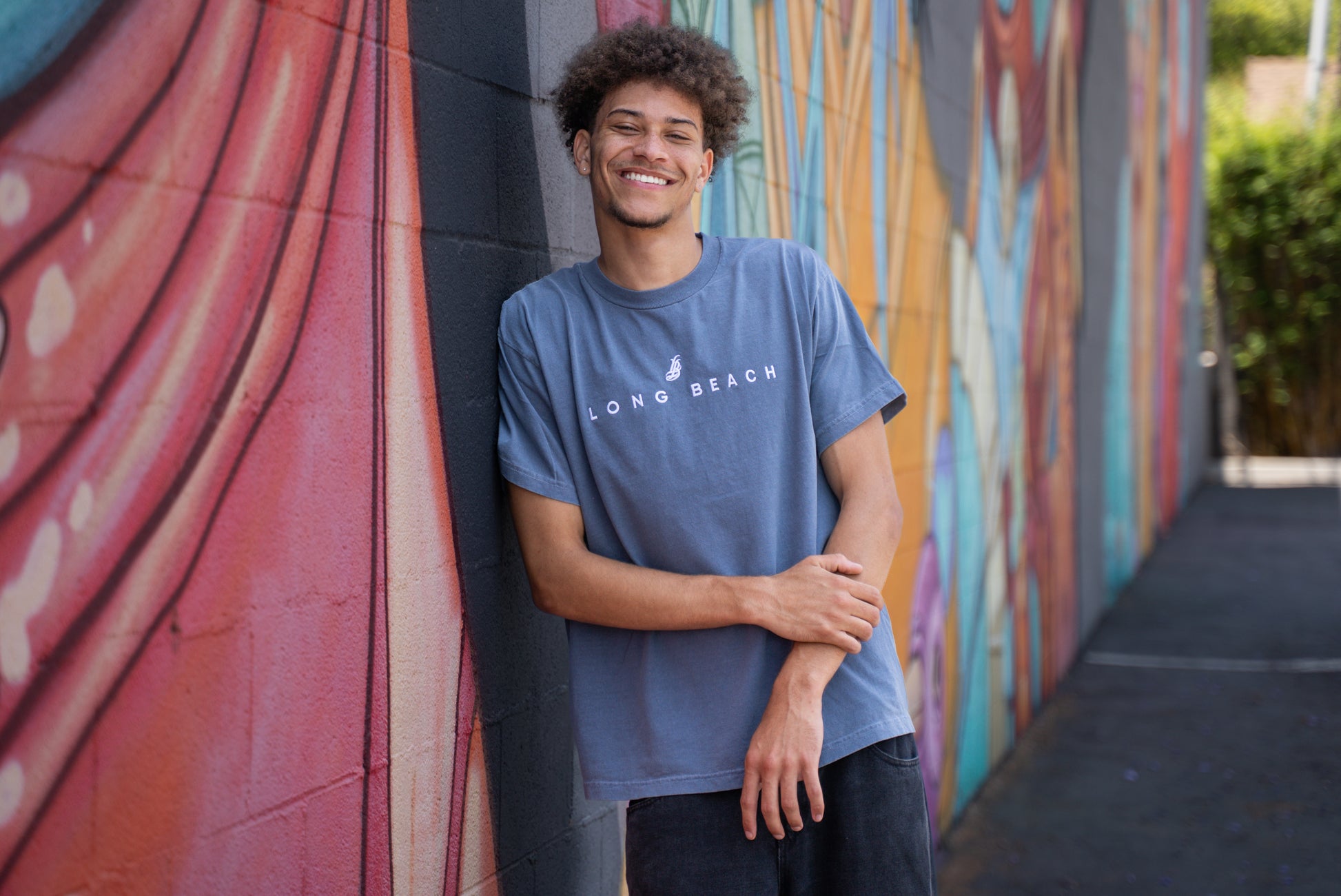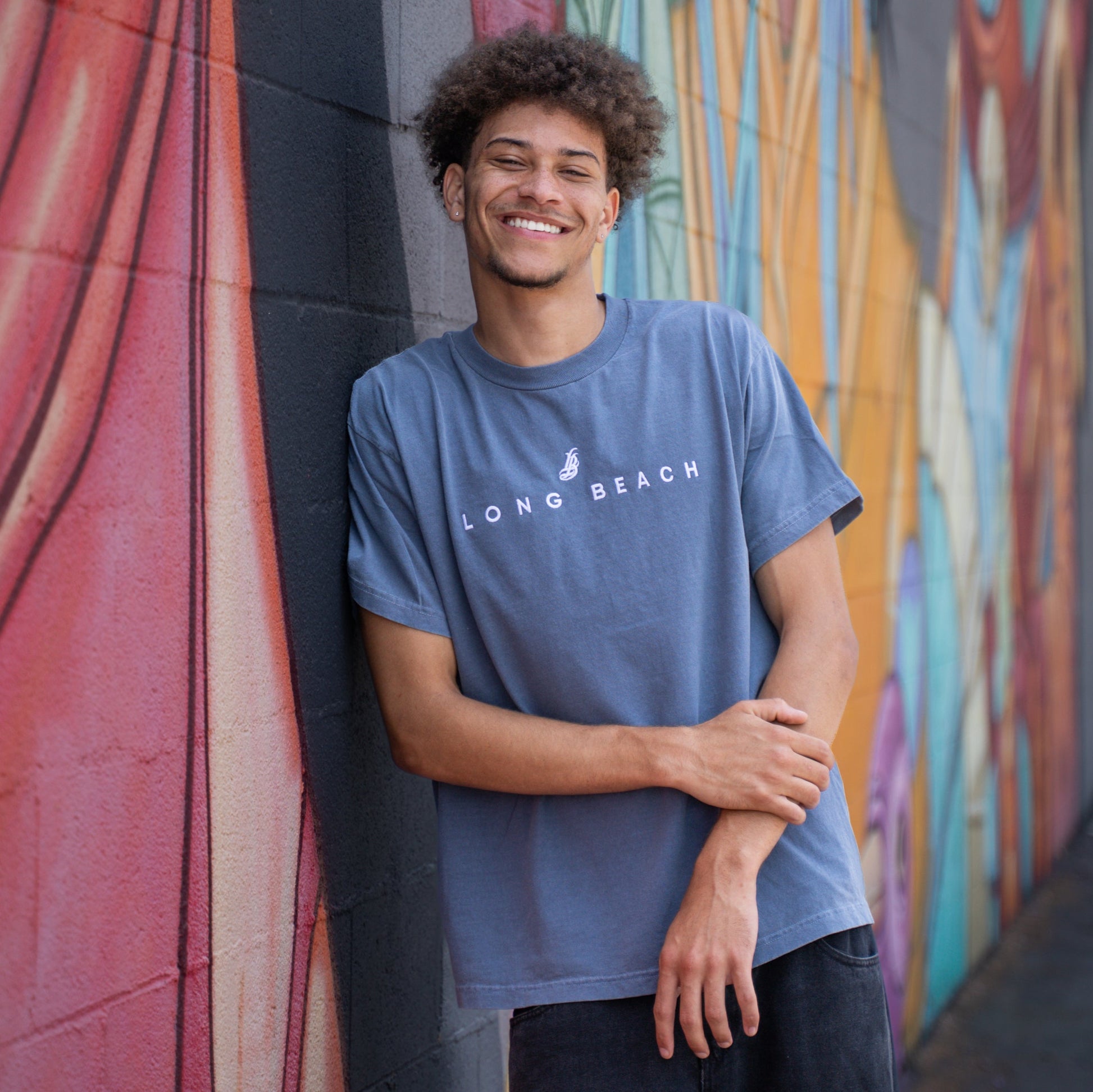 Embroidered Men's Garment-Dyed Vintage Navy T-Shirt