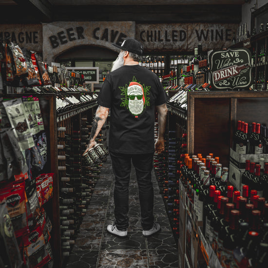 Never Made X Long Beach Clothing Co X f/8 Studios- Santa Men's Black T-Shirt