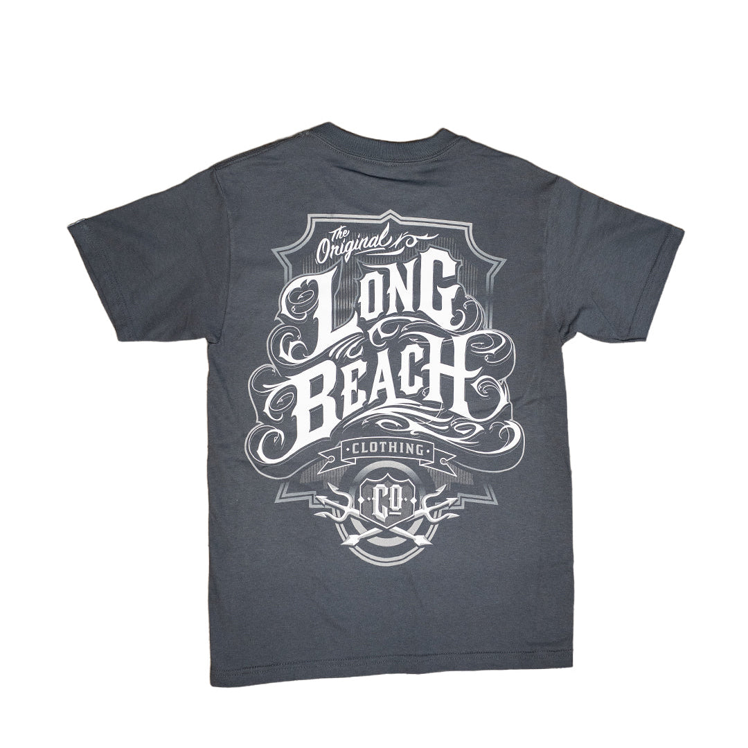 Rep Long Beach with our classic Oil Logo t-shirt. The art was designed by local graffiti writer, Natoe, who was inspired by the label on an old can of motor oil.