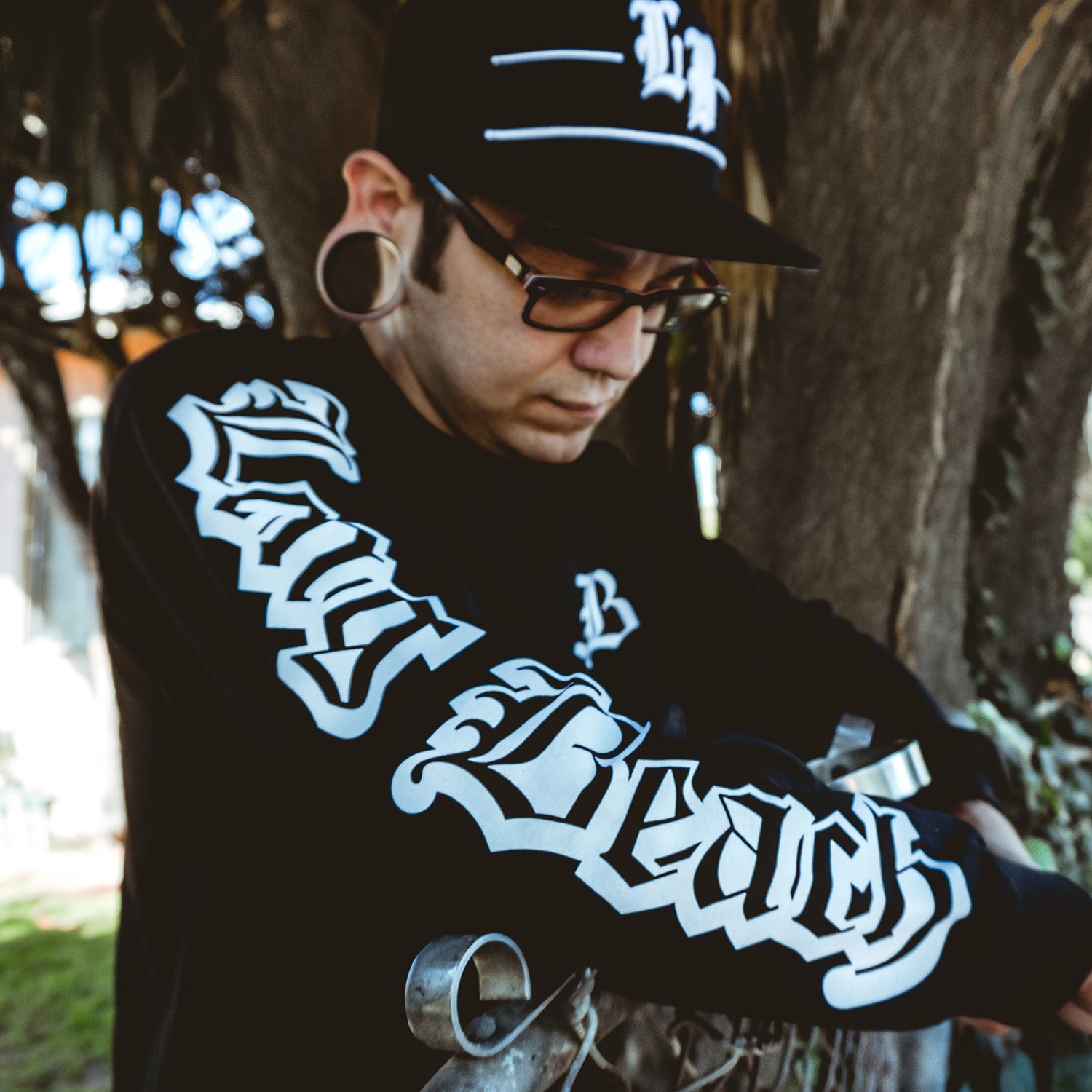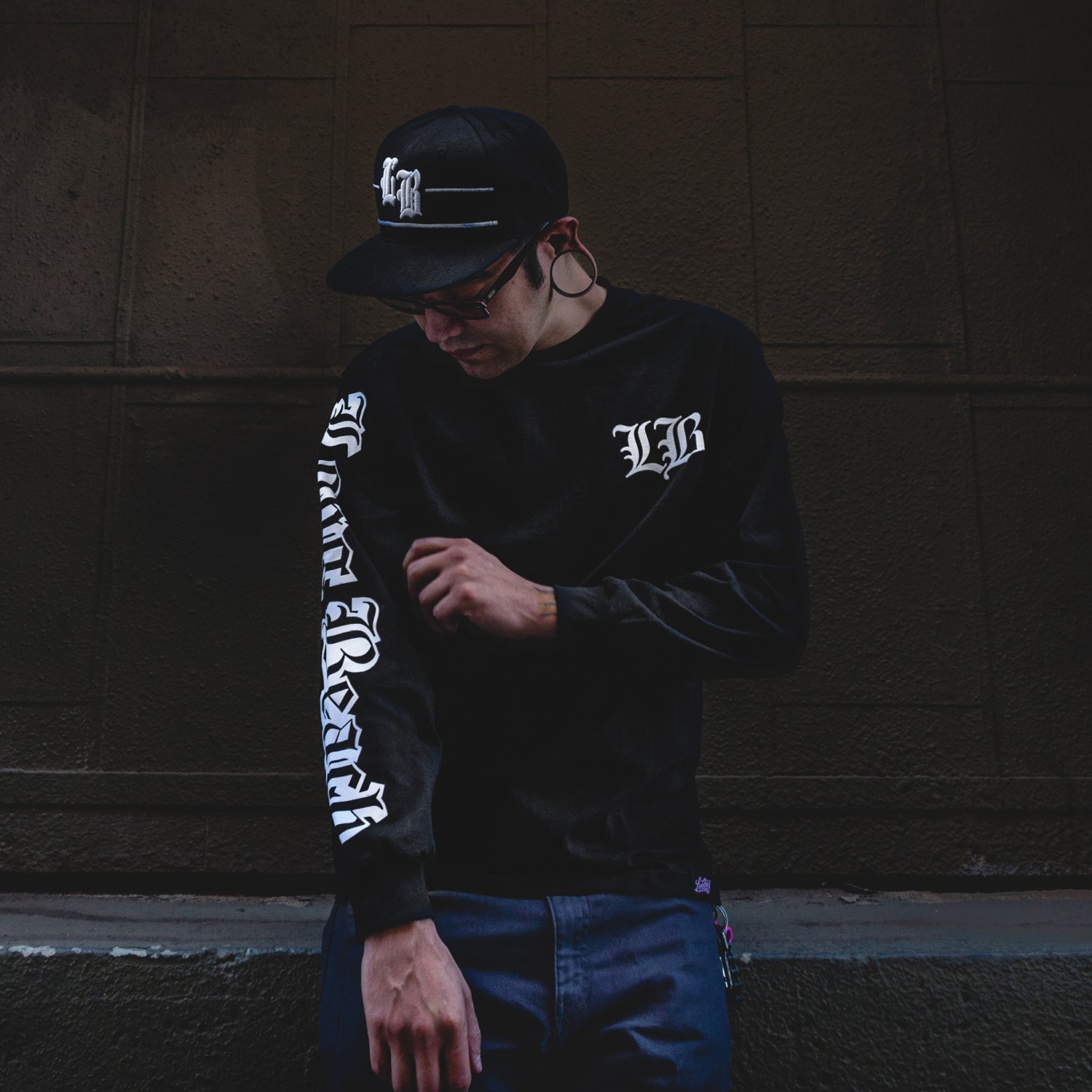 There's nothing more classic than our Long Beach old english long sleeve t-shirt. LB on front left chest with Long Beach on right sleeve.